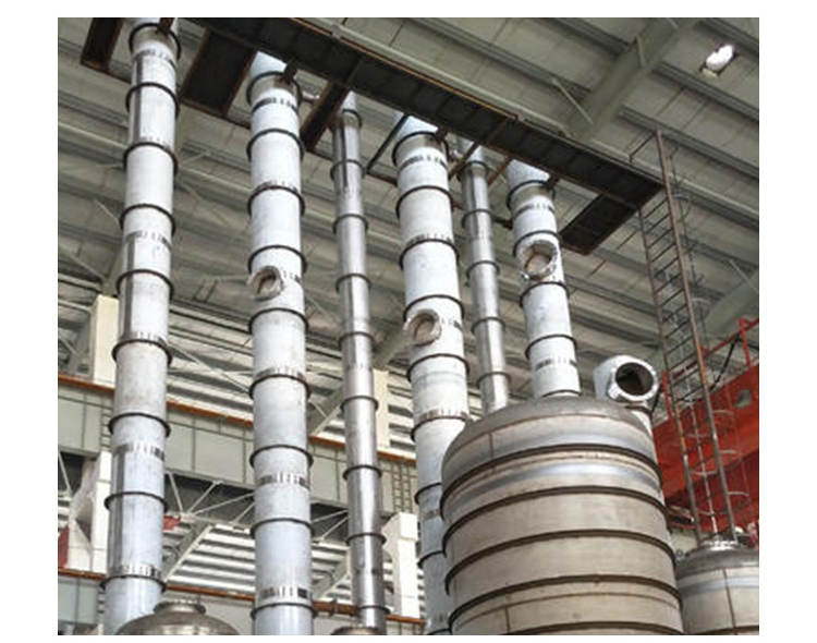 冷卻水溫渡過高。冷卻水進入水溫過高,集中加熱產生的大量二次蒸汽不能及時冷凝,濃縮設備,真空度將疾速降低,蒸發量缺乏。多效蒸發器設備進料濃度缺乏,或進料小于物料的量及蒸發量,不凝氣的存在。不凝氣過多影響多效蒸發系統的真空度,要降低減少帶入多效蒸發器系統的不凝氣性氣體的量。
